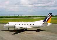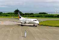 結ぶ1日1便のSAAB機(スウェーデン製の新鋭ながらやっぱりプロペラ機)、航空