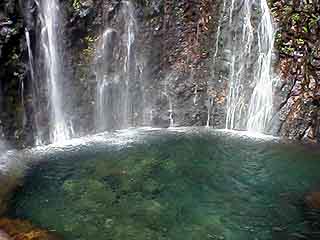 滝つぼはエメラルドグリーンに輝き、ルリクワガタを想像させる。