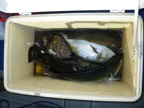 黒ソイ1、ハマチ5匹くらい、アコウ、サワラ、カサゴ、マトウダイなど