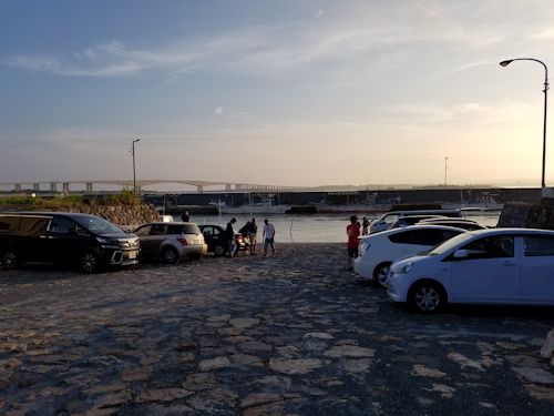 下げ潮の時間帯に、川上から、桃太郎の桃が流れてくるように