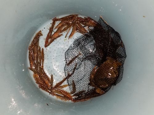 救おうとすると、エビが逃げるので、逃さんようにうまく掬う。