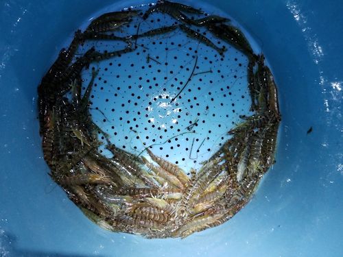 なぜか知らないが、川上からクルマエビが流れてくる。