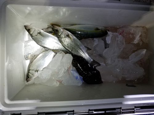 ドウマンガニ3-4匹、ちびシーバス5-6匹、ちびイナダ1