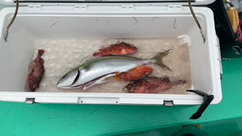 まず最初にサビキにイワシを掛けて、その次にそのイワシを襲ってくる大きな魚を釣る釣り方。