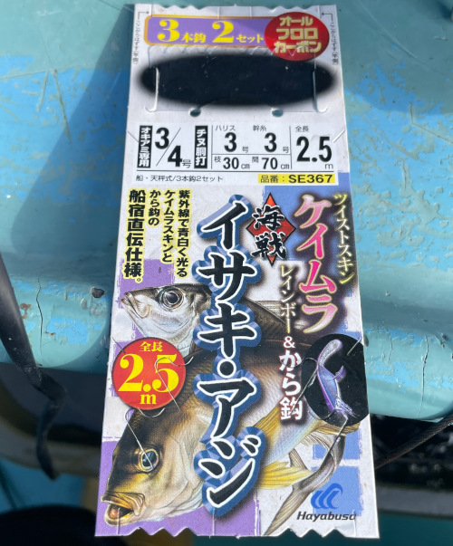 仕掛けはイサキの仕掛けのちょい太めのハリス3号くらいの吹流し3本針。