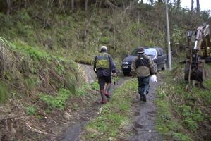 イワナを流れに帰し我々も帰路に着く。思えば朝のサクラマス大バラシも最後のイワナも黒田氏の結果である。対する3人のメンバーはカスリもしない完全ボーズ!果たして黒田氏はこのまま調子に乗ってサクラマスを釣ってしまうのか? |