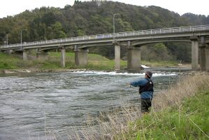 ここは矢◆川の一級ポイントで実績も高い。我々もチョット期待して釣りを始める。先ほどの●山川と違って矢◆川の流れは適度に澄んでいて安心して釣りが出来る。水量も豊富でいかにも釣れそうな雰囲気で気合が入ってしまう。 |