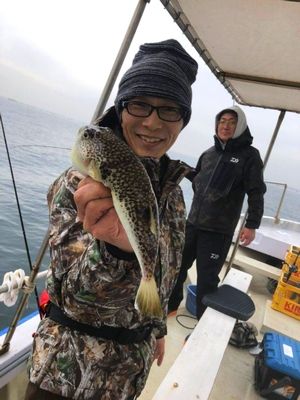 潮が小さいとなかなか数が伸びないフグ。 3人で12フグ。 竿頭は手慣れ三上氏の6フグでした。