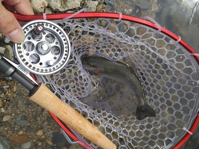 フライの自重が0.6gほどになるのでフライの重さでキャストは可能ですが雨でロッドが濡れるとブランクにラインが張り付いてラインが出ずキャスト不可能。