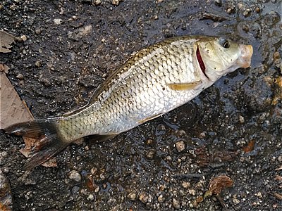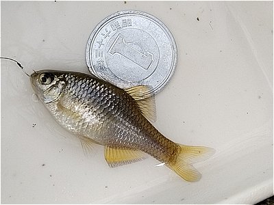 コイが多い流心を外し岸際を探ってようやく極小アブラボテ。