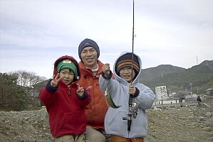 ![]() 藤井家次男の啓介くん(3歳)も釣りました! 奈々ちゃん(1歳)も大喜び! |