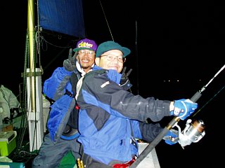 トロAのおおくぼさんとこくうさん。 落とした竿釣り上げてもらってラッキ〜♪ |